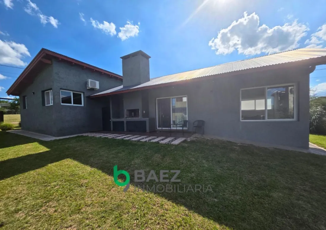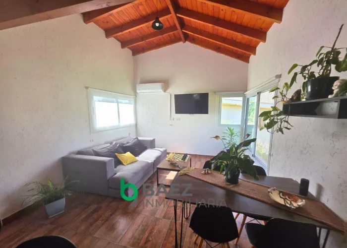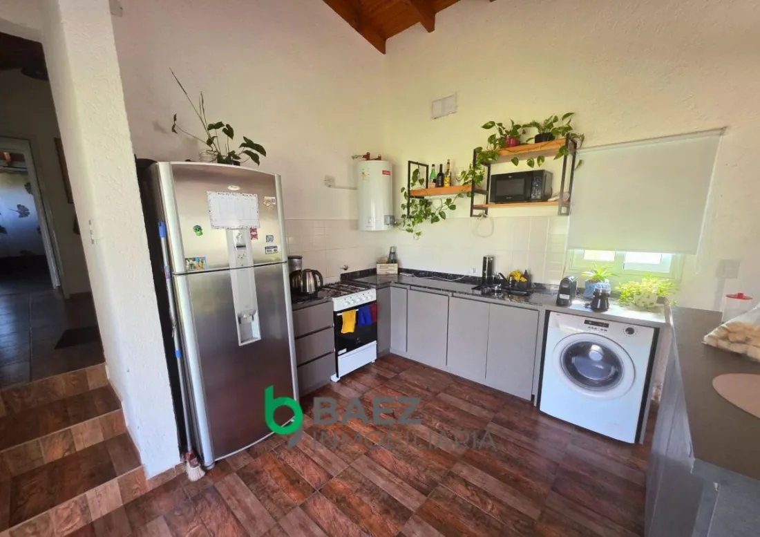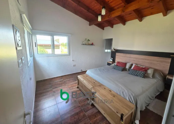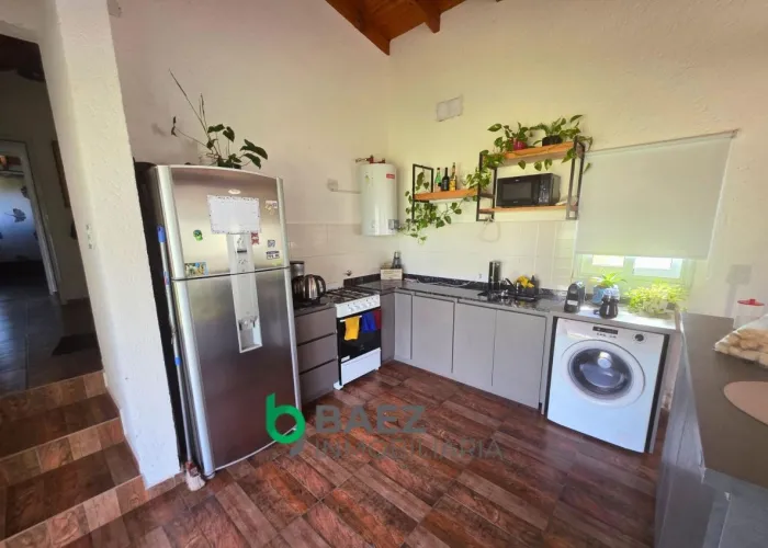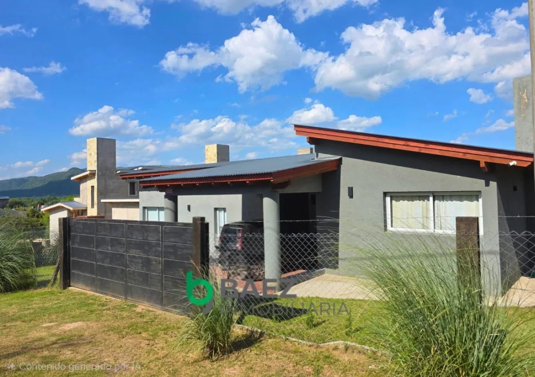 La vivienda cuenta con hall de entrada, 2 dormitorios, el principal posee vestidor y aire acondicionado frío/calor. 1 baño (muy amplio) cocina comedor y living con aire acondicionado frío/calor inverter. Cochera cubierta, galería con asador y sector de guardado. La casa posee amplios ventanales permitiendo el ingreso de luz natural. Cámaras de seguridad y portón de ingreso. Completamente cercado con tejido romboidal y durmientes. Parquizado. Propiedad lista para ingresar a vivir. Entorno tranquilo y natural.