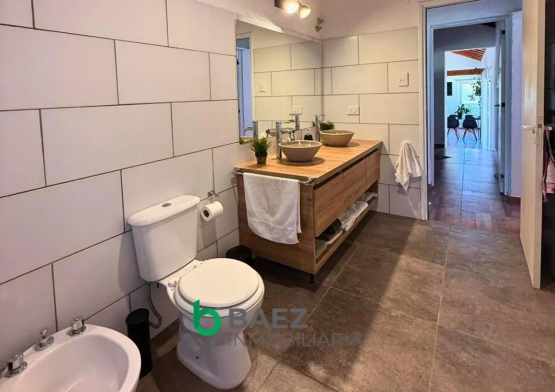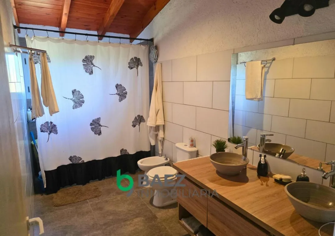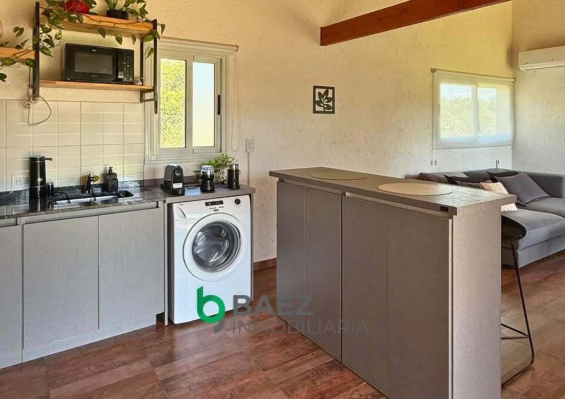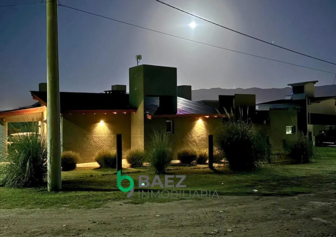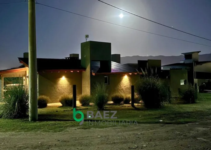 La vivienda cuenta con hall de entrada, 2 dormitorios, el principal posee vestidor y aire acondicionado frío/calor. 1 baño (muy amplio) cocina comedor y living con aire acondicionado frío/calor inverter. Cochera cubierta, galería con asador y sector de guardado. La casa posee amplios ventanales permitiendo el ingreso de luz natural. Cámaras de seguridad y portón de ingreso. Completamente cercado con tejido romboidal y durmientes. Parquizado. Propiedad lista para ingresar a vivir. Entorno tranquilo y natural.